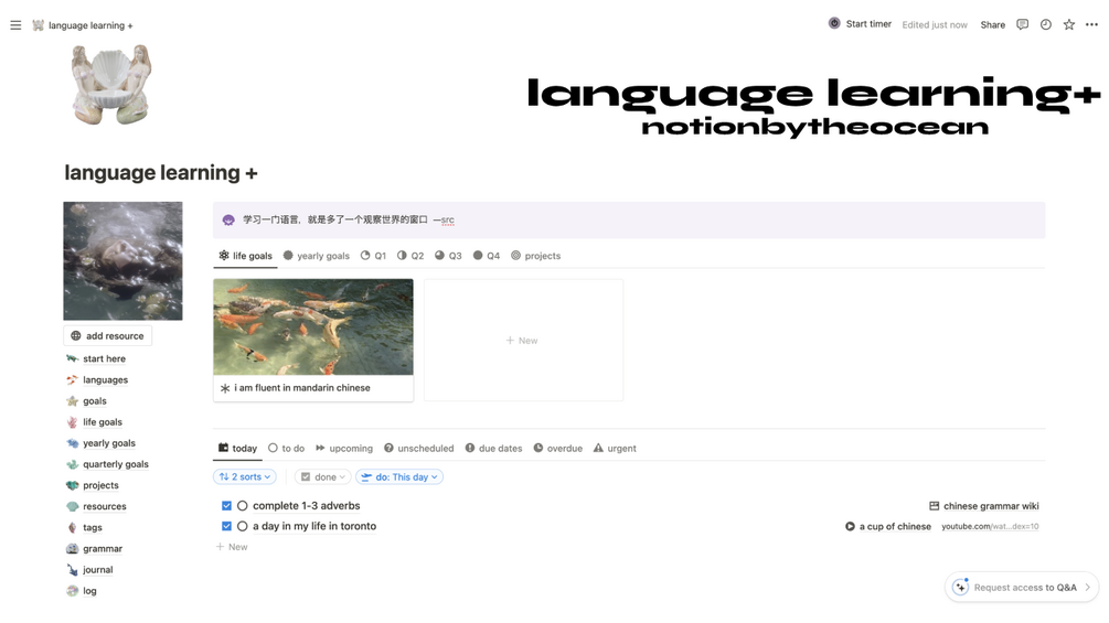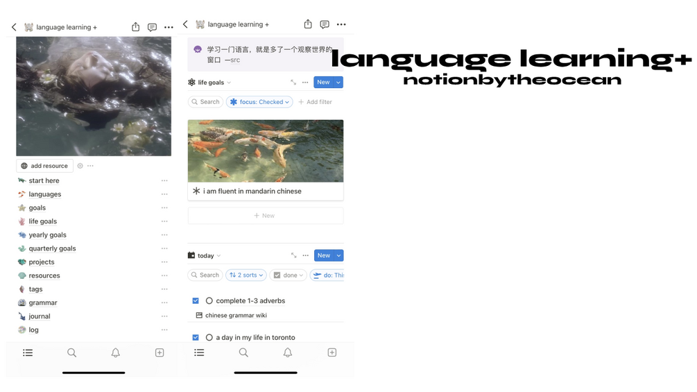 language learning + notion template in ~ oceancore aesthetic ~