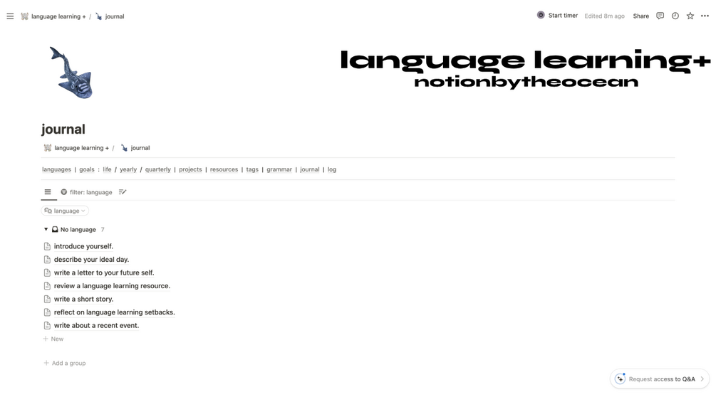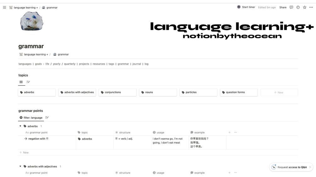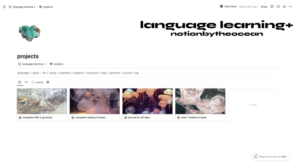 language learning + | notion template ~ oceancore aesthetic ~