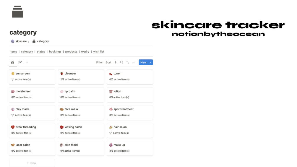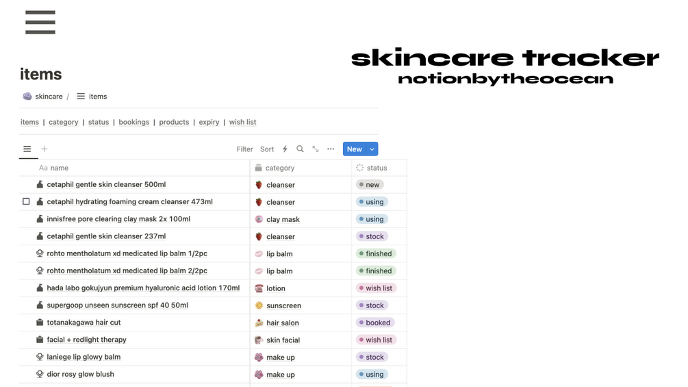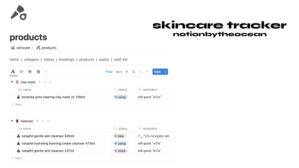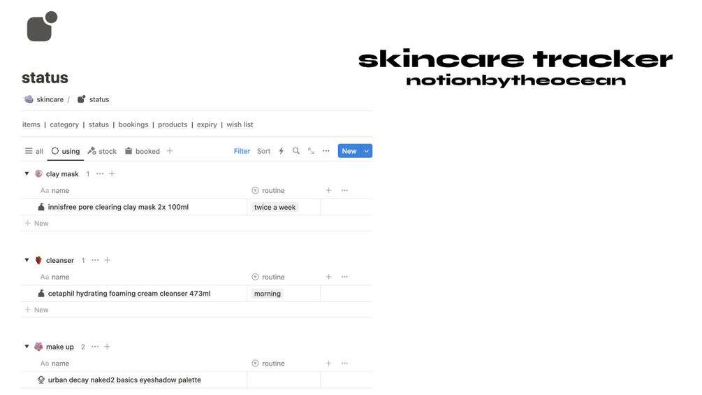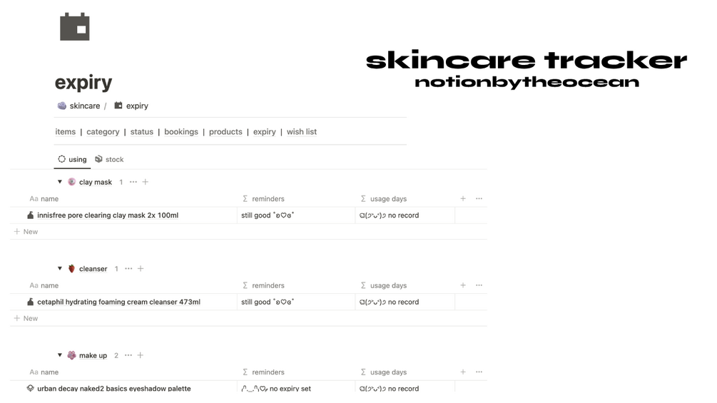 skincare tracker notion template in ~ cutecore aesthetic ~
